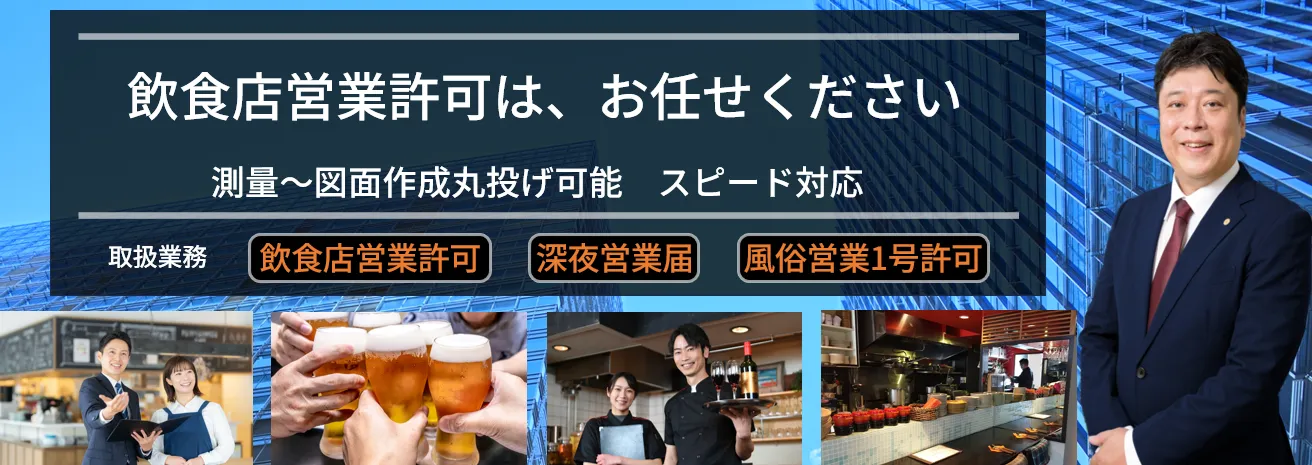 当事務所は「現場調査・書類作成・図面作成・保健所との確認・申請代行・許可証受取」を一括してフルサポートしております。必要な情報を教えていただけたら、後は全てお任せください。